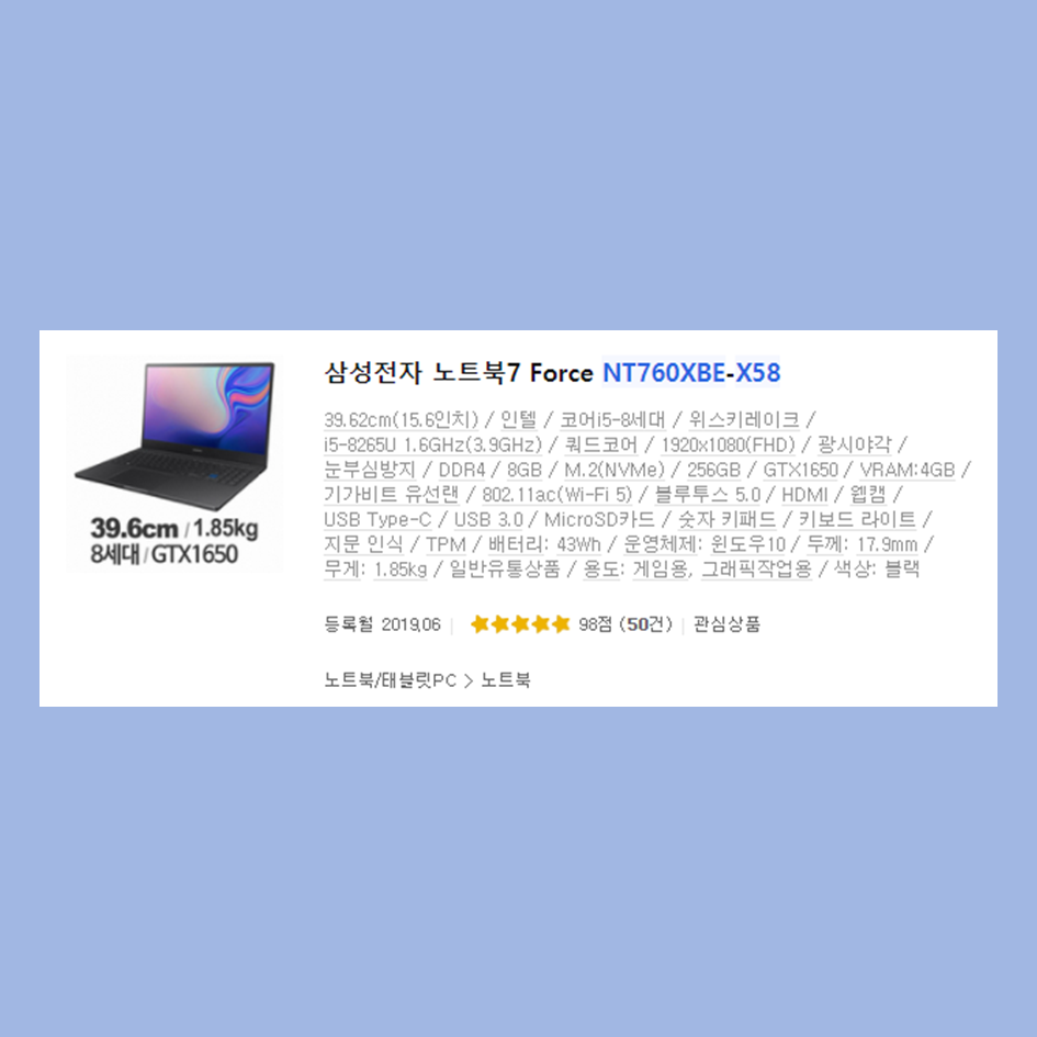 노트북을 19년도 12월에 구매했다. 비록 3개월도 안 된 노트북이지만 처음에 구매한 사양에서 부족한 부분이 생겨서 업그레이드하려고 한다. 현재의 사양 노트북 모델명 : SAMSUNGNt760xbe-x58 CPU: Intel