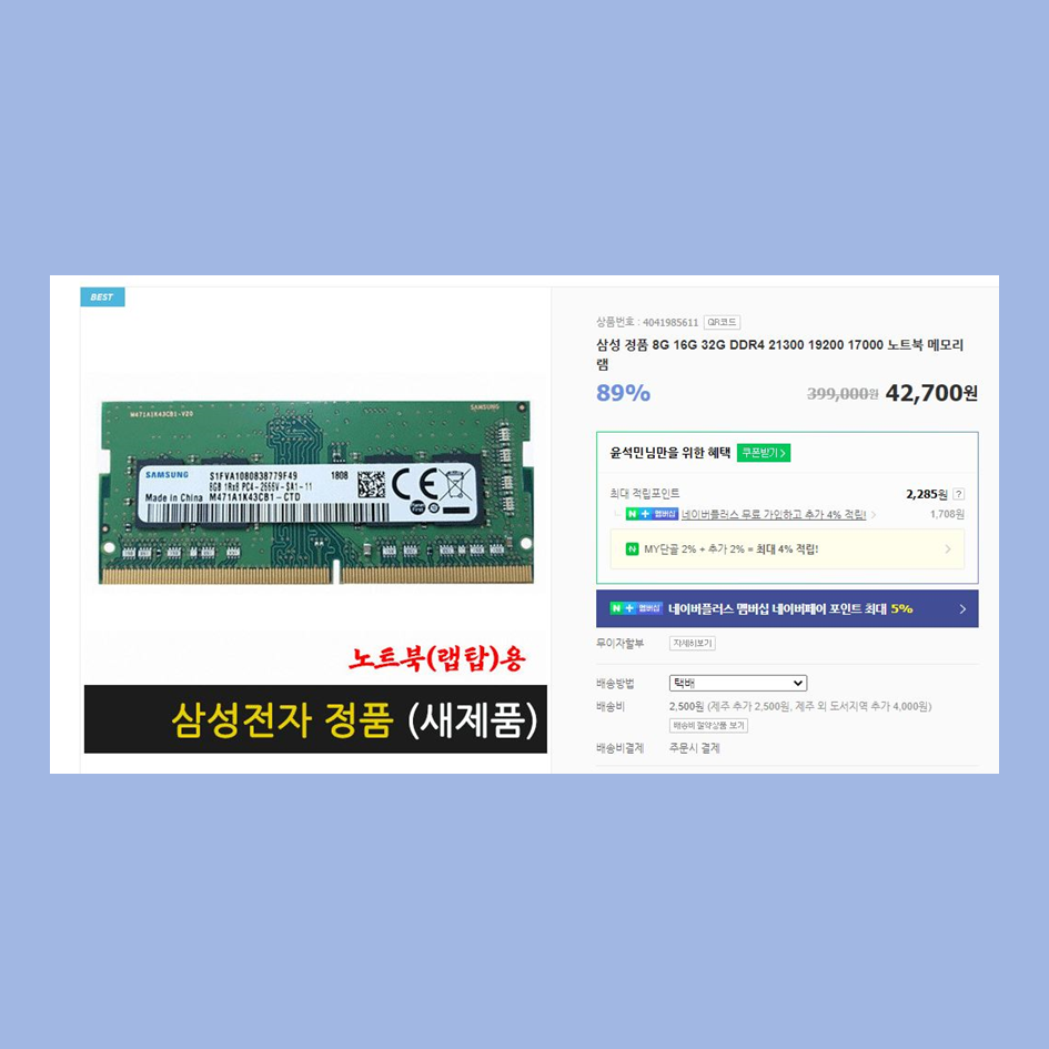 네이버나 다나와 닷컴에 노트북용 램을 검색합니다.