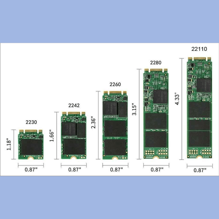M.2 NVMe SSD를 구매할 때 주의 할 점은 대부분 2280사이즈의 SSD를 구매하게 될 것이지만 노트북의 경우에는 크기가 다를 수도 있습니다. 또한, 미니 메인보드에서도 크기를 제한할 수 있으므로 노트북의 경우 하판을 열어 크기를 확인하고 구매하는 것을 추천해 드립니다.