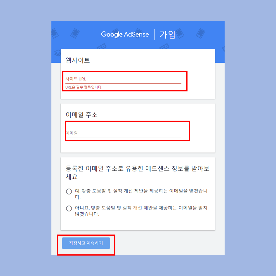 아래에는 이메일주소로 유용한 정보를 받아볼 거냐고 묻는데 보통은 아니요를 하지만 광고와 수익을 개선하기 위한 정보를 줄 것 같아서 예를 눌렀습니다.